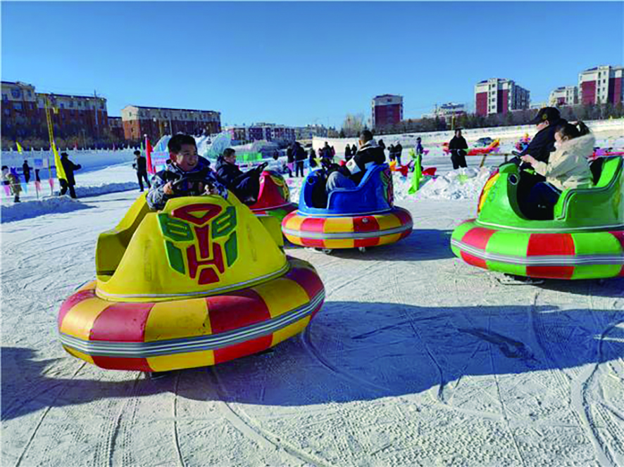 据了解,“纳令湖冰雪之约”春节主题文旅活动巧妙借助察右中旗得天独厚的冰雪和寒冷资源优势,将纳令湖打造出冰雪景观,同时推出一系列文体娱乐项目,满足了市民冬季运动与休闲娱乐的热切需求。其中,充气雪地八爪鱼滑雪转转、充气雪地龙舟等项目趣味十足,让游客们在冰雪中尽情欢笑;碰碰车则带来了刺激的碰撞体验;机器猫电动旋转秋千滑雪圈转转更是深受小朋友们喜爱;小坦克滑冰车和自行车造型的滑冰车新颖独特,为游客提供了别样的滑冰乐趣。