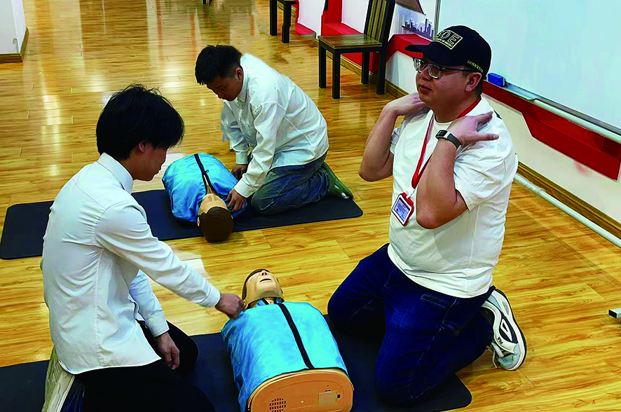 在活动现场,学员们和顾客两两一组参与实操,从胸骨定位、手臂发力到按压节奏,每个环节都力求准确无误。他们互相指导、互相练习,亲身体验了心肺复苏等急救操作,切实感受急救过程中的要点。