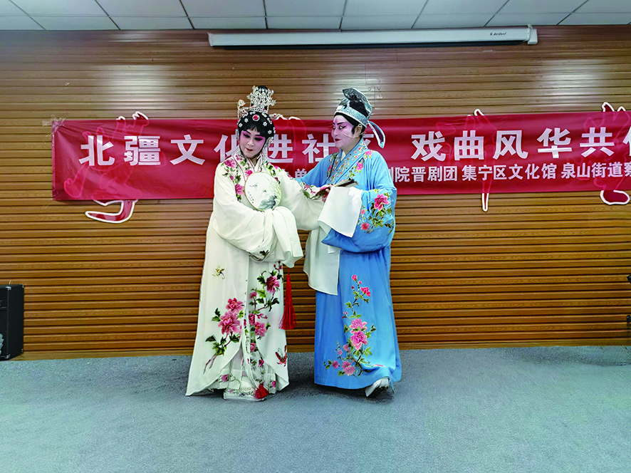 本报讯(记者 李梦娜 实习记者 张玥 翟辉)“下面请大家用热烈的掌声有请各位艺术家为大家带来精彩的演出……”4月9日下午3点,由乌兰察布市艺术剧院晋剧团、集宁区文化馆、泉山街道察哈尔社区共同举办的“北疆文化进社区,戏曲风华共传承”惠民演出活动在察哈尔社区精彩上演,开场的晋剧经典曲目《谢瑶环——花园》让现场观众赞不绝口。
