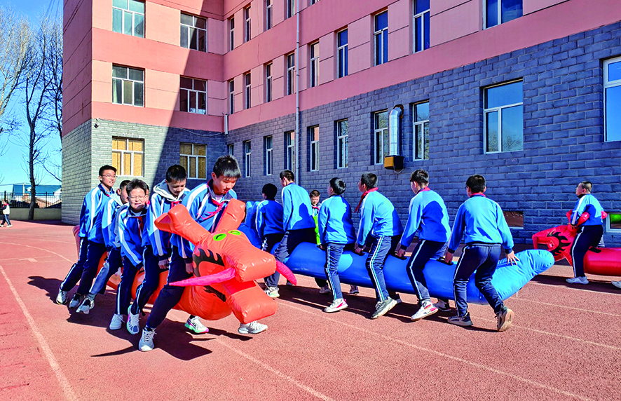 周一至周五的大课间时段,大板鞋竞速、陆地赛龙舟、短绳创意编队等9大特色项目有序开展。每个班级每周系统体验3—4项民族传统与团队协作运动。通过这种方式,学校不仅提升了学生的身体素质,还培养了团队合作精神。