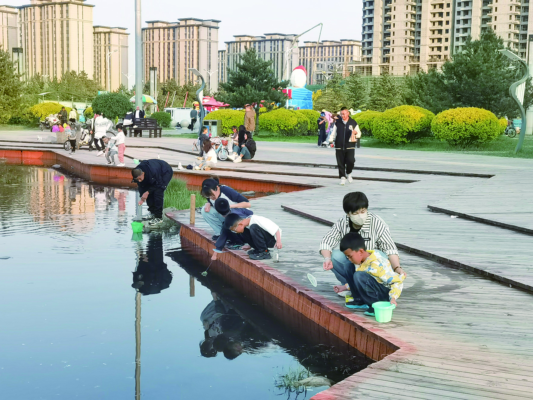 走进乌兰察布市植物园,人工湖边热闹非凡。不少孩子手持小网兜,蹲在岸边专注地寻找小蝌蚪的身影,时不时发出惊喜的欢呼。在创意陶瓷染色区,孩子们化身“小艺术家”,拿起五颜六色的颜料,在陶瓷上自由创作,绘制出一幅幅充满童趣的作品。一旁的敲石膏寻宝摊位前,伴随着此起彼伏的“咚咚”声,孩子们小心翼翼地敲开裹着宝石和玩具的石膏。当漂亮的宝石或心仪的玩具显露出来时,他们的脸上瞬间绽放出满满的成就感。