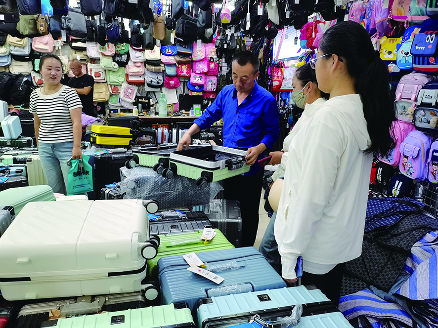 箱包店也迎来销售高峰,墙面挂满各式书包,卡通款、大容量款、拉杆箱一应俱全,几位家长正帮孩子试背,并仔细检查肩带、拉链。“最近家长选书包、行李箱的特别多,准大学生对行李箱更挑剔,各尺寸一天能卖二三十个。”店主说道。日化店和家纺店内,家长们忙着选购洗漱用品与床单、被套。市民刘瑞芝的儿子即将升入高中,开始住校生活,她买了满满一大袋:“孩子第一次住校,生活用品得准备齐全,这里能一次性买全,不用跑好几个地方。”家纺店店主也表示:“我们特意备了各种尺寸的床上用品,方便不同学校的学生使用。很多家长很细心,会询问面料舒适度、是否易清洗,我们会按需求推荐合适产品。”