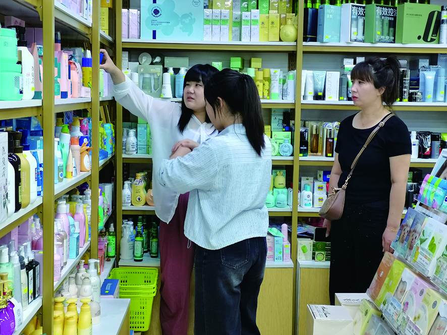 ●店员为顾客介绍洗面奶实习记者 刘诏烨 摄